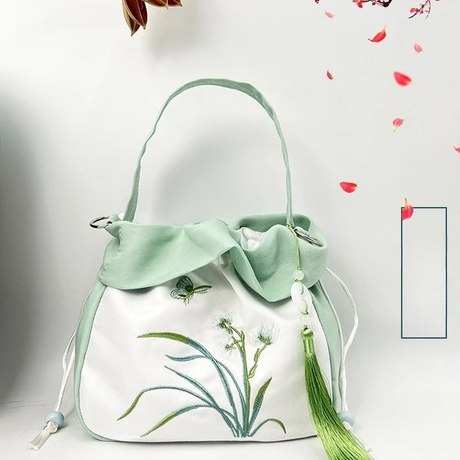 Populaire borduurwerk handgemaakte handtas crossbody tas Hanfu tas qipao tas glanzende zijde satijn damestas