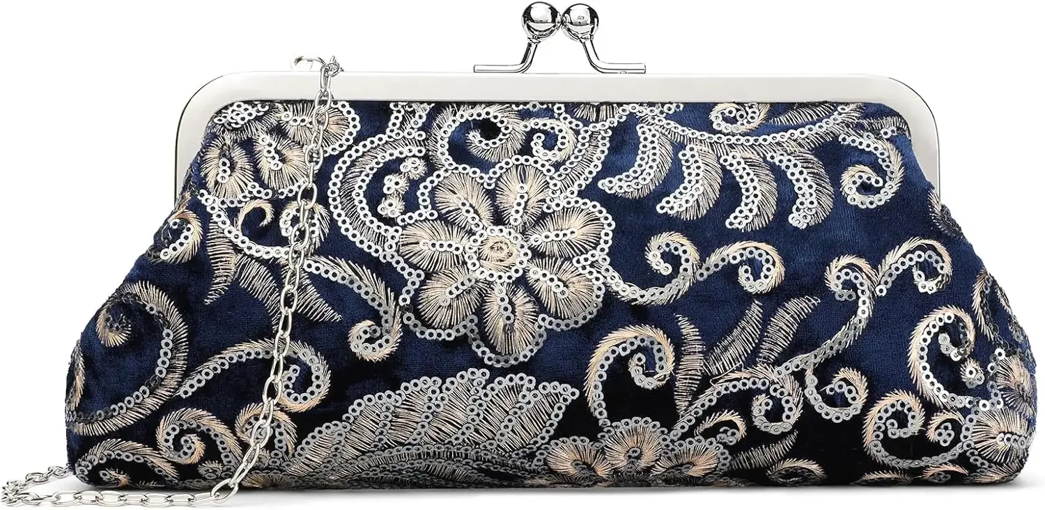 Clutch portemonnee voor dames bloemenborduurwerk pailletten avondtassen elegante Kiss Lock bruiloft cocktail