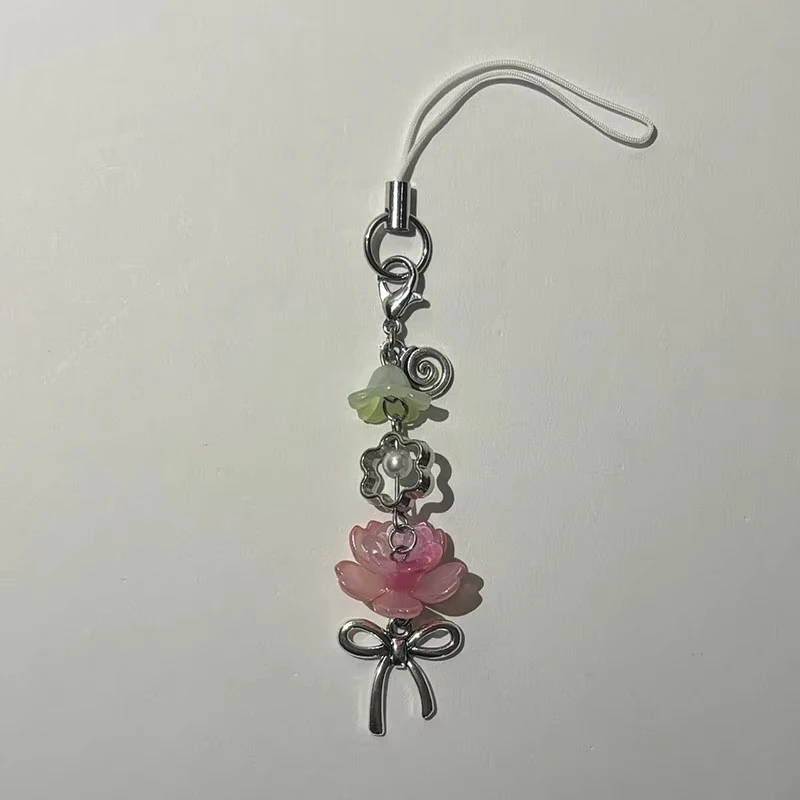 Eenvoudige handgemaakte perzik bloem kralen hanger sleutelhanger roze bloem telefoon charme riem tas decoratie Lanyard sleutelhanger accessoire cadeau
