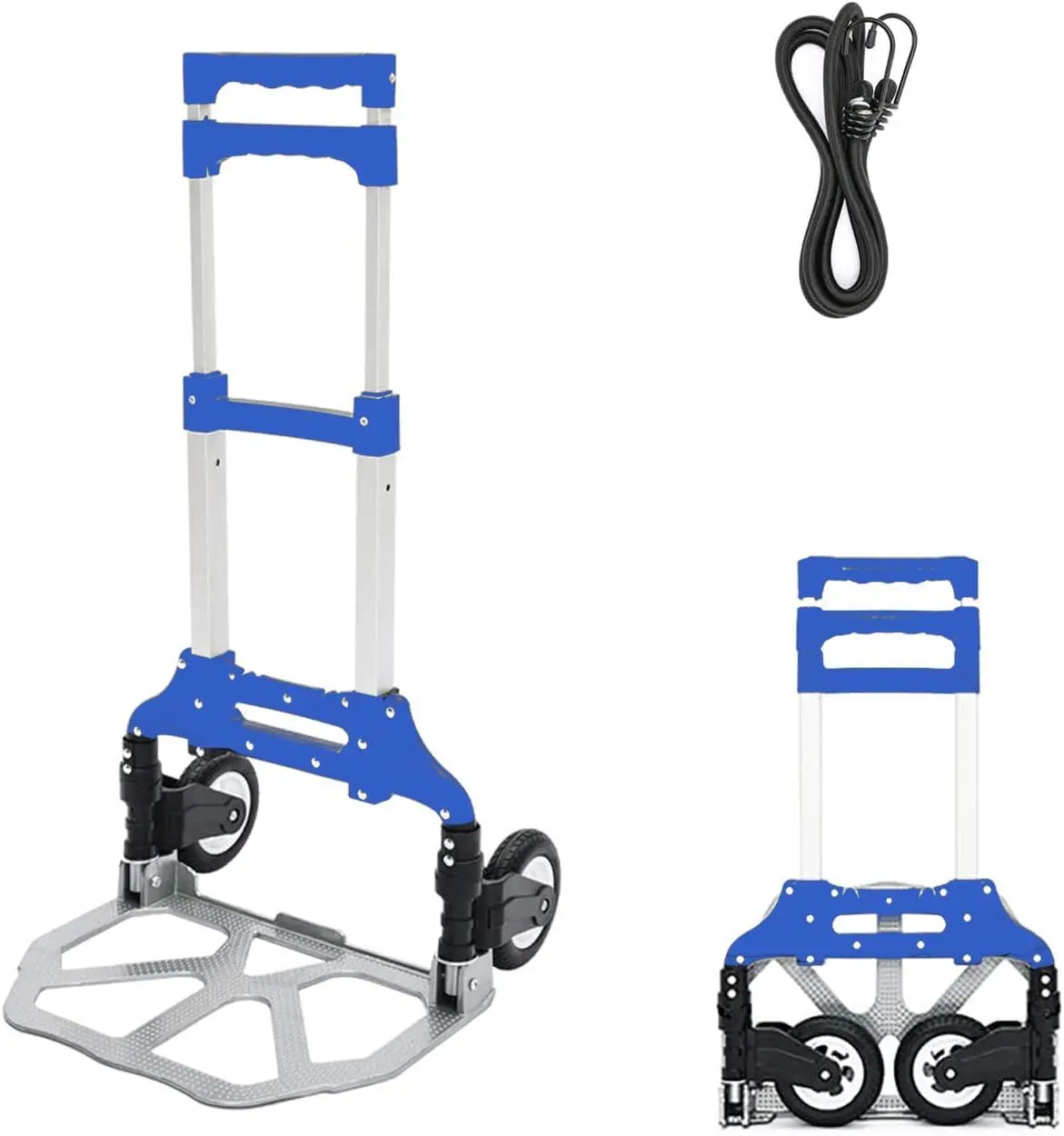 Opvouwbare steekwagen Aluminium bagagewagen Trolleywagen Zwart MAX-belasting 175 lbs, bungeekoord, telescopische handgreep, dubbele lagers