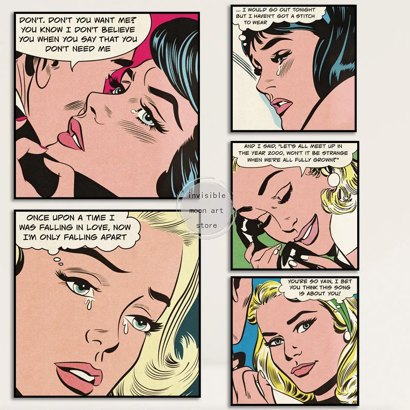 Retro Strip Stijl Roy Lichtstein Vrouwen Tranen Kunst Poster Canvas Schilderij Muurprint Foto Voor Kamer Home Decor Cuadros