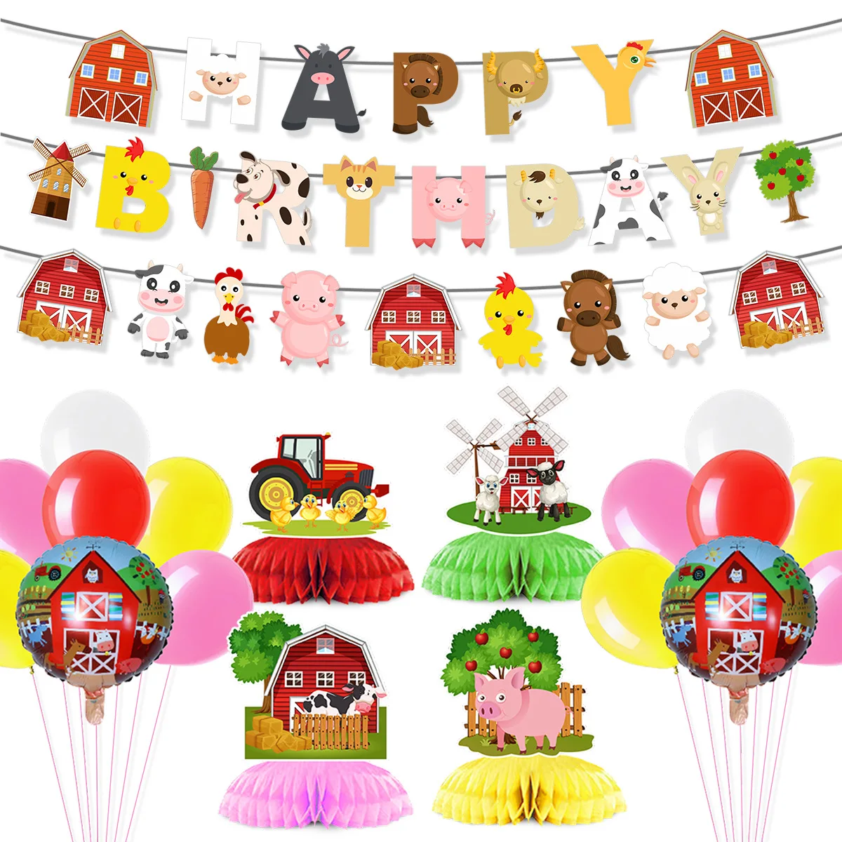 Cartoon boerderij dier thema verjaardag banner swirl hangende koe varken cake toppers ballon voor kinderen verjaardag baby shower partij decor