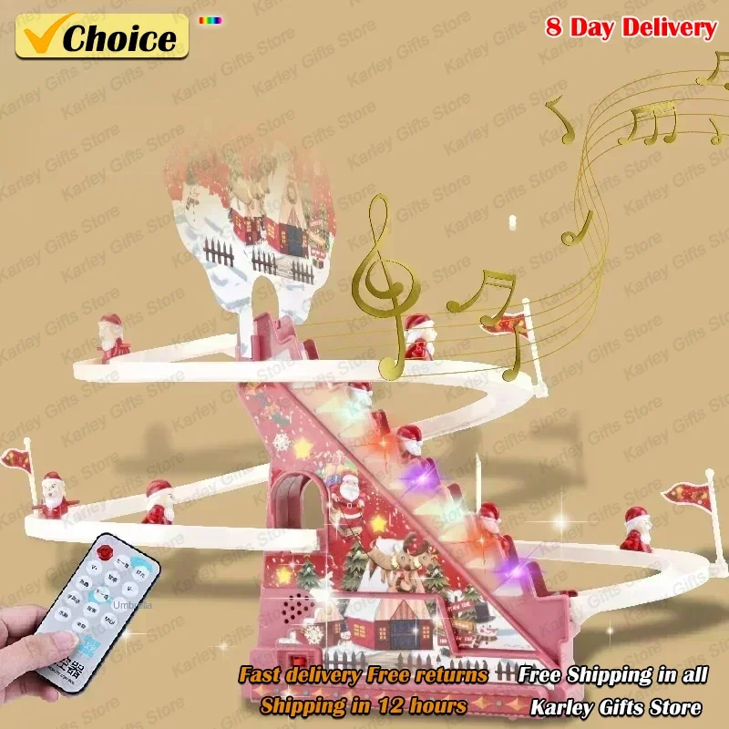 Nieuwe Kerstman Traplopen Vroege Educatie Elektrische Baan Kleine Gele Eend Licht Muziek Varken Speelgoed Kerst Halloween Cadeau