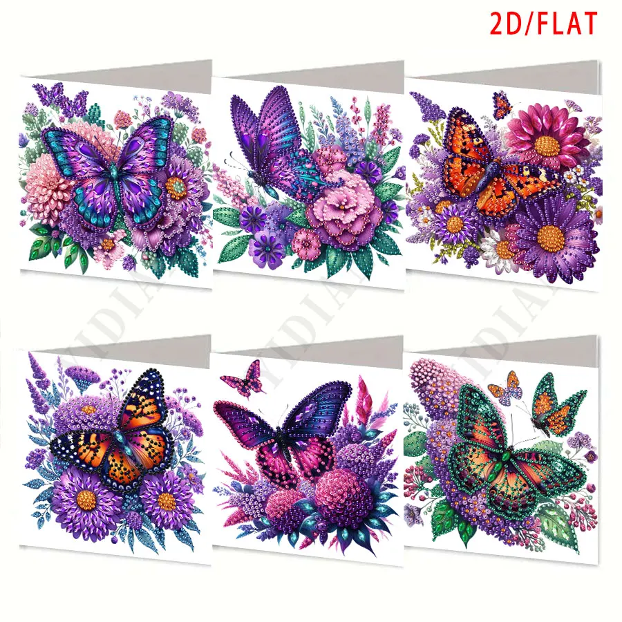 6-delige Diamond Painting paarse vlinder wenskaartenset - perfect vakantiecadeau om warme wensen naar familie en vrienden te sturen