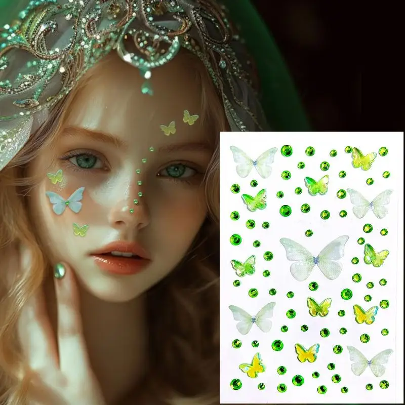 1 vel vlinder traan edelsteen stok op gezicht juwelen festival gezicht edelstenen stickers zelfklevende lichaam nagel telefoon glitter stickers