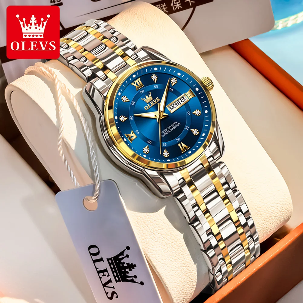 OLEVS Mode waterdichte dameshorloges dubbele kalender vlindersluiting lichtgevend quartz horloge voor dames Origineel merkpolshorloge