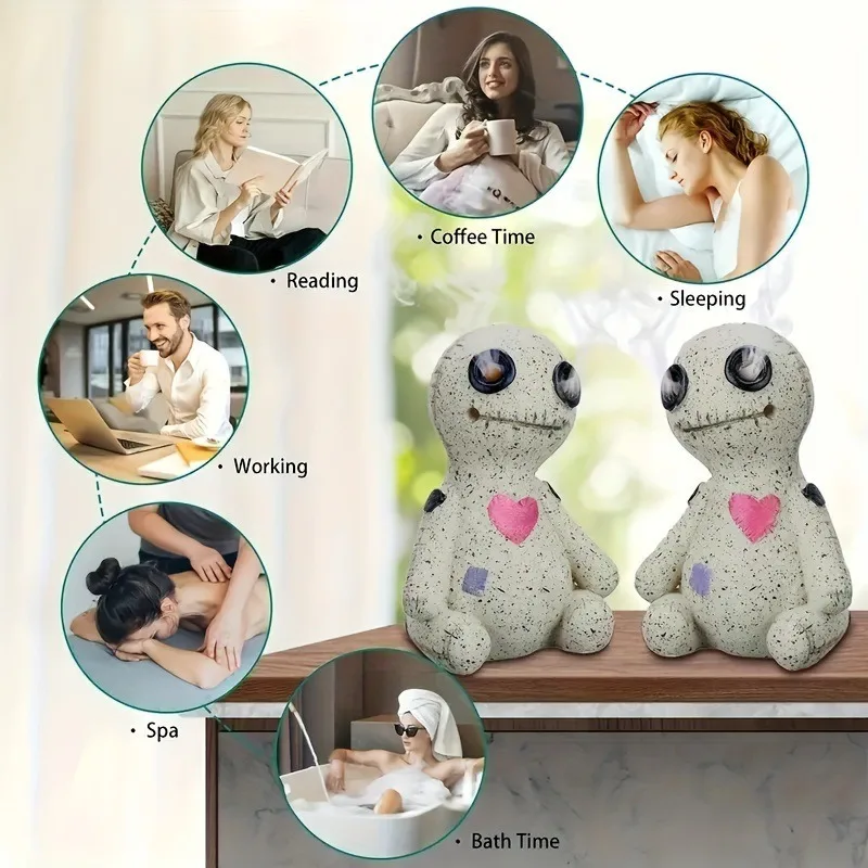 Voodoo Doll Kegelbrander Wierookbrander, Mistvormige aromatherapiemist van neus en ogen Hand gebeeldhouwde hars staande pop