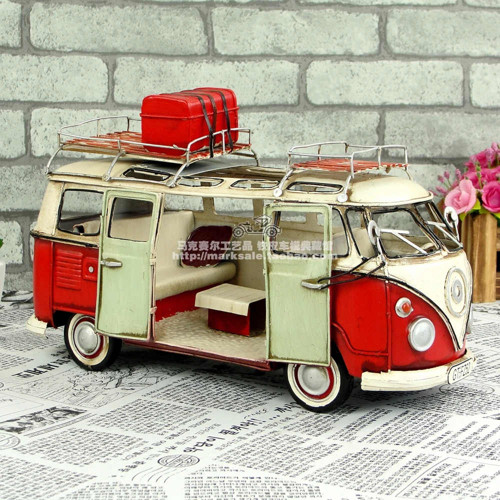 Vintage Smeedijzeren Volkswagen Camping Bus Ijzeren Auto RV Toerwagen Model Metaal Handwerk Thuis Creatieve Decoraties Geschenken