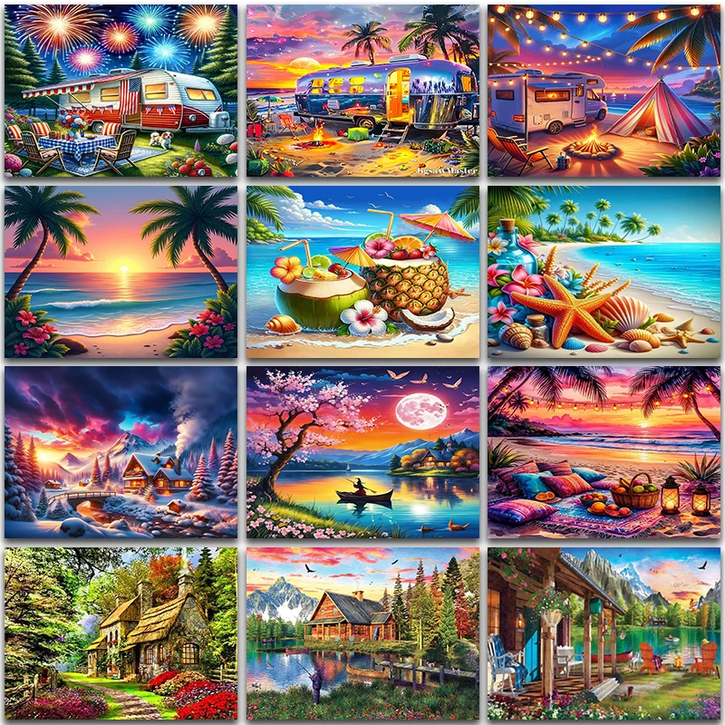 Groot formaat Diamond Art Schilderen Zeezicht Zonsondergang VW Bus Auto landschap Home Decor Volledige Vierkante & Ronde mozaïek borduurwerk kruissteek