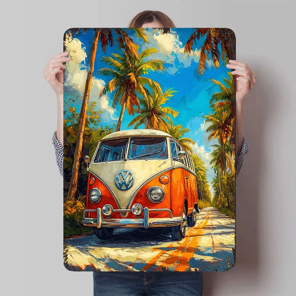 Vintage VW Bus Tropical Coconut Grove Metal Wall Art Decor voor woonkamer