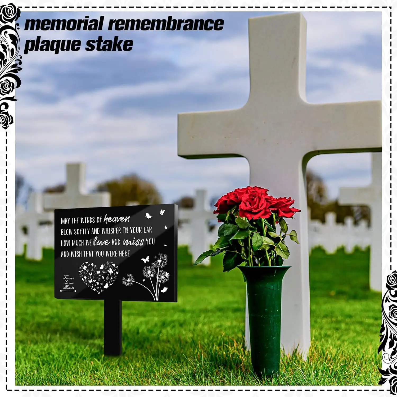 Suncatchers Herdenking Gedenkplaat Paal Waterdichte Grafmarkering Voor Begraafplaats Zwarte Gedenktuin Paal Sympathie Duivenkunst