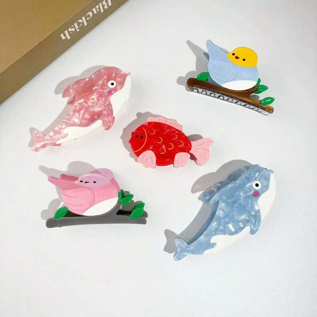 1Pc Oceaan Serie Walvis Vogel Kus Vis Azijnzuur Grijp Clip Schattige Splicing Haai Clip Haar Accessoire