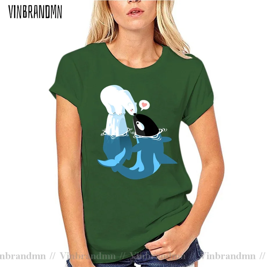 Mooie dolfijn kus ijsbeer t-shirt vrouw dier digitaal gedrukt vredige moordenaar walvis liefde beer t-shirt homme Tops hipster