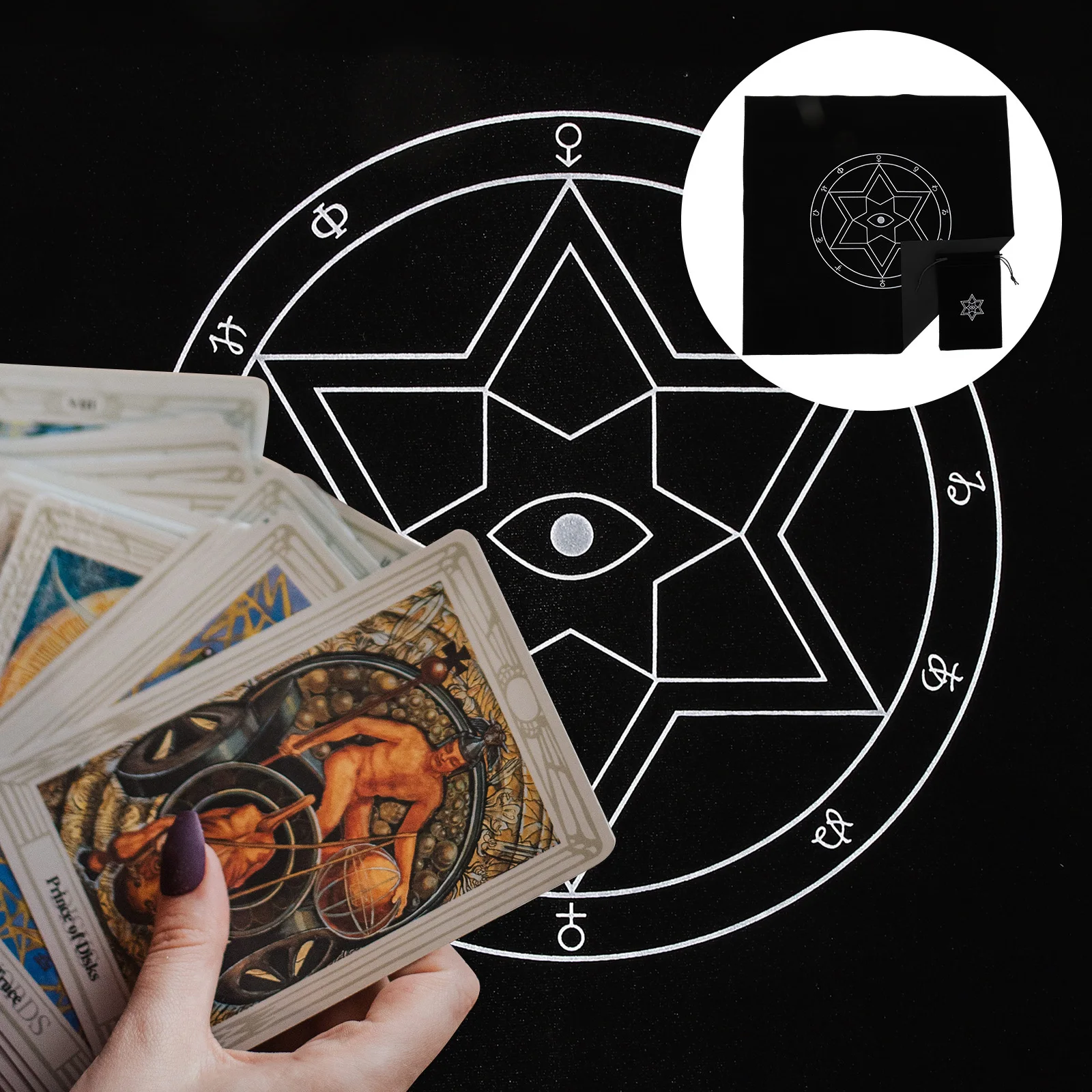 1Set Zijde Altaar Tarot Tafelkleed Vintage Design Waarzeggerij Leesdoek Trekkoord Opbergtas Tarot Kaarthouder