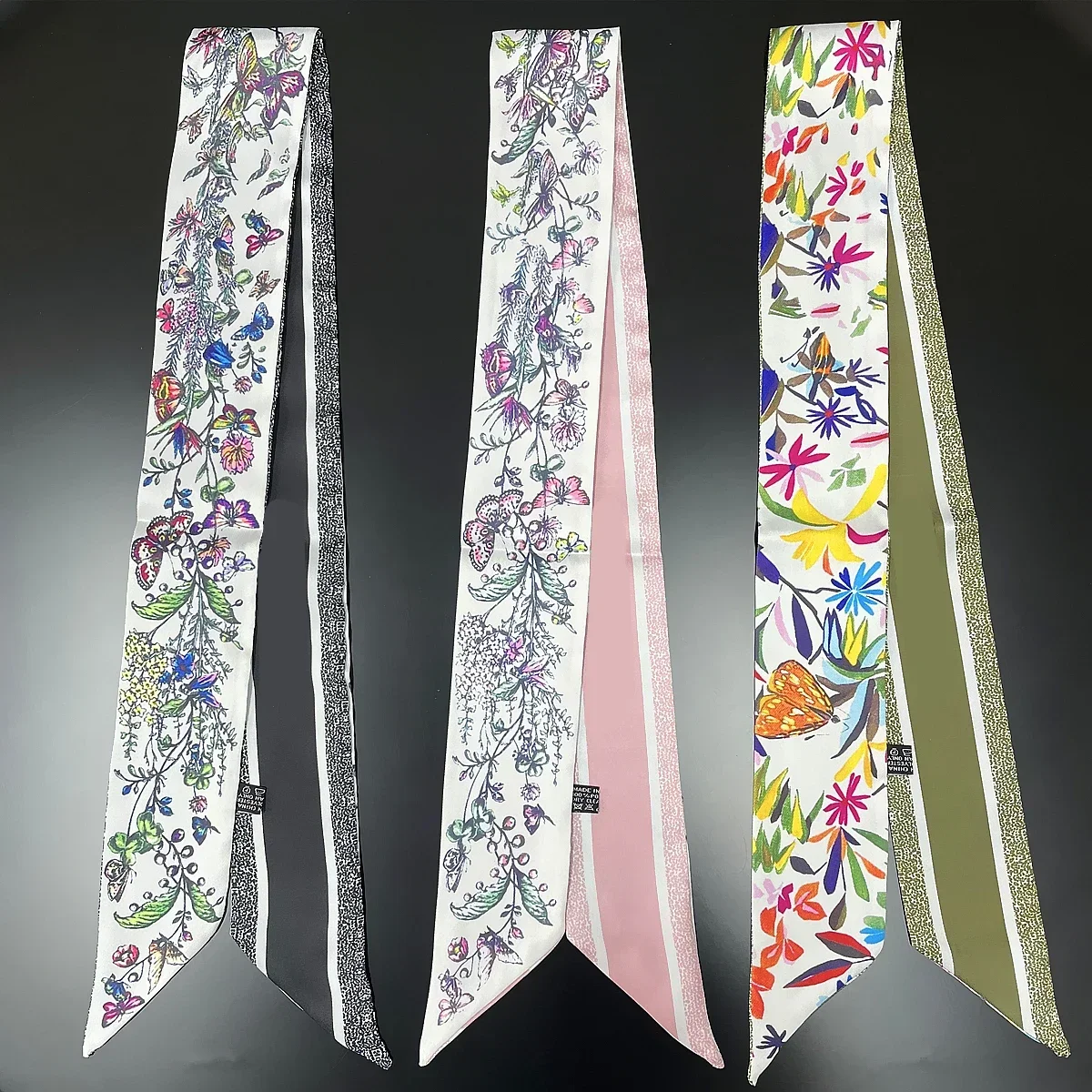 Spring New Tarot Card Hand-painted Flowers Birds and Plants 26 Letters Full Color Women's Silk Scarf Tied Bag Small Ribbon Scarf