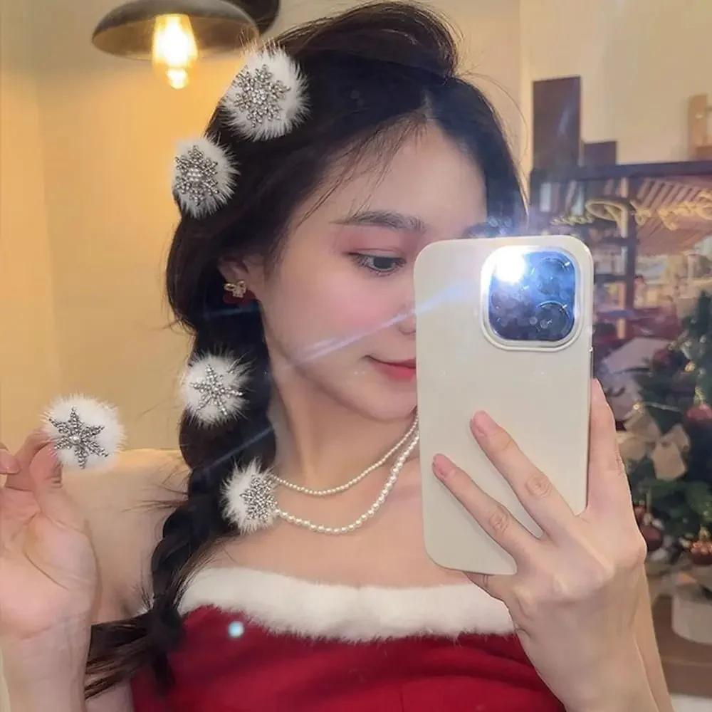 2 STUKS Prachtige Strass Sneeuwvlok Haarspeldjes Parel Zoete Kerst Sneeuwvlokken Haarspelden Zilveren Boog Eendendons Clip