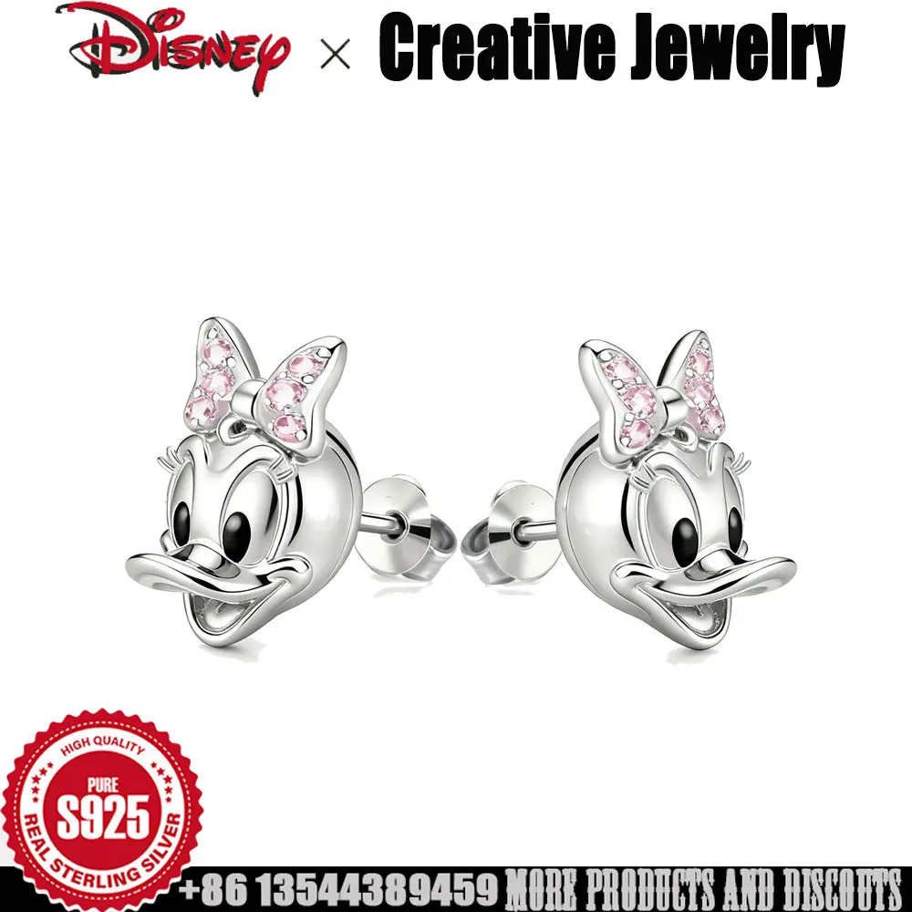 S925 zilveren oorbellen voor vrouwen roze Zirkoon inleg Disney Duck Daisy cartoon schattige oorknopjes van hoge kwaliteit luxe sieraden cadeau