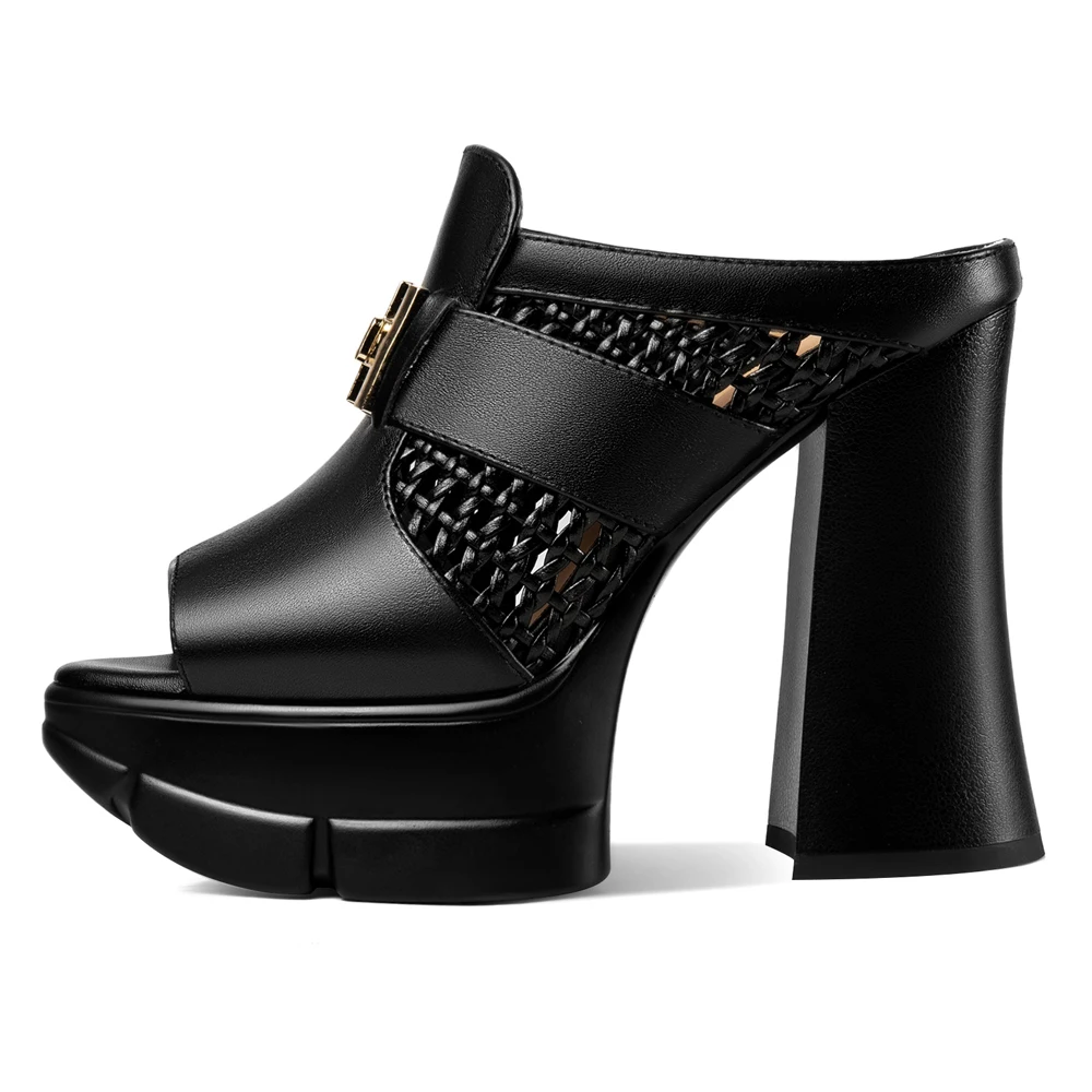 2025 Nieuwe Mode Vrouwen Platform Sandalen Luxe Slippers Zomer Schoenen Dames Muilezels Super Hoge Hak Ronde Tenen Blok Hakken Zwart
