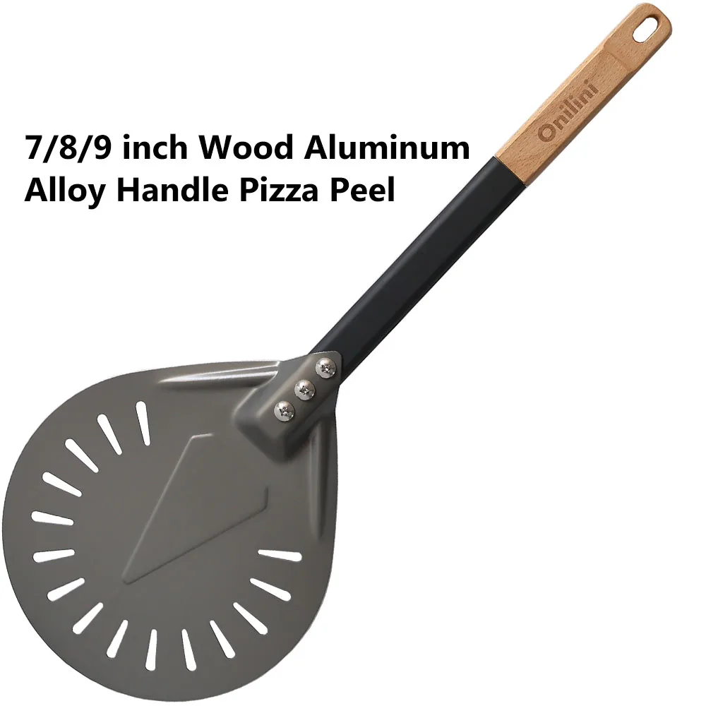 SHANGPEIXUAN 14/13/12-calowa łopatka do pizzy Perforowana łopatka do pizzy Drewniany uchwyt Łopatka do pizzy Twarda powłoka lub anodowane krótkie szpatułki