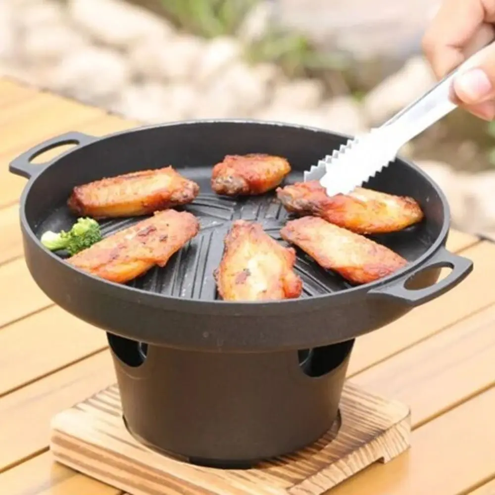 Grill na węgiel drzewny ze stali nierdzewnej, przenośny grill kempingowy z podwójnymi składanymi skrzydłami, patelnią nieprzywierającą, regulowaną wentylacją