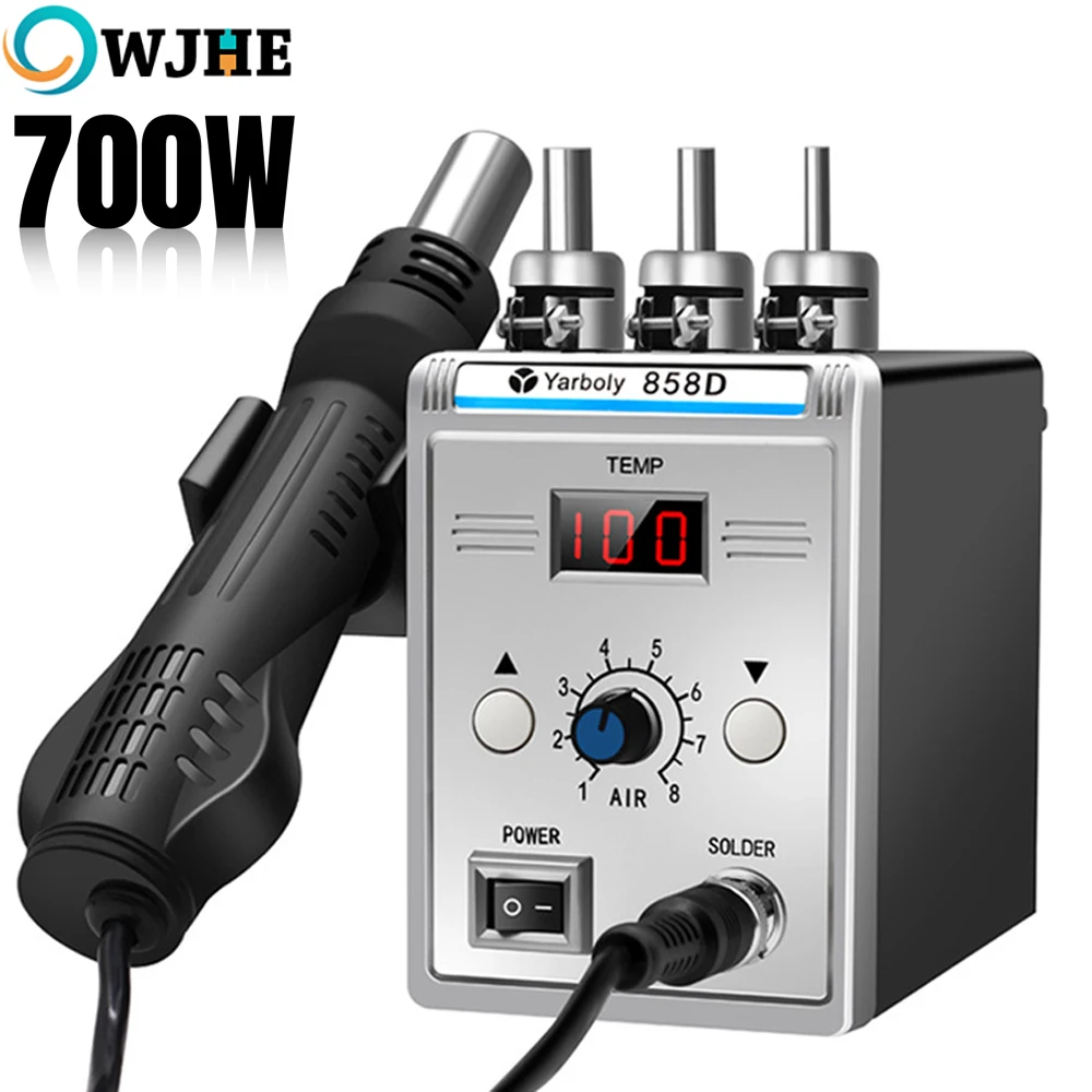 Pistolet na gorące powietrze OWJHE 858D, stacja lutownicza z wyświetlaczem LED, opalarka 700W, suszarka do włosów do lutowania SMD SMT, narzędzie do napraw spawalniczych