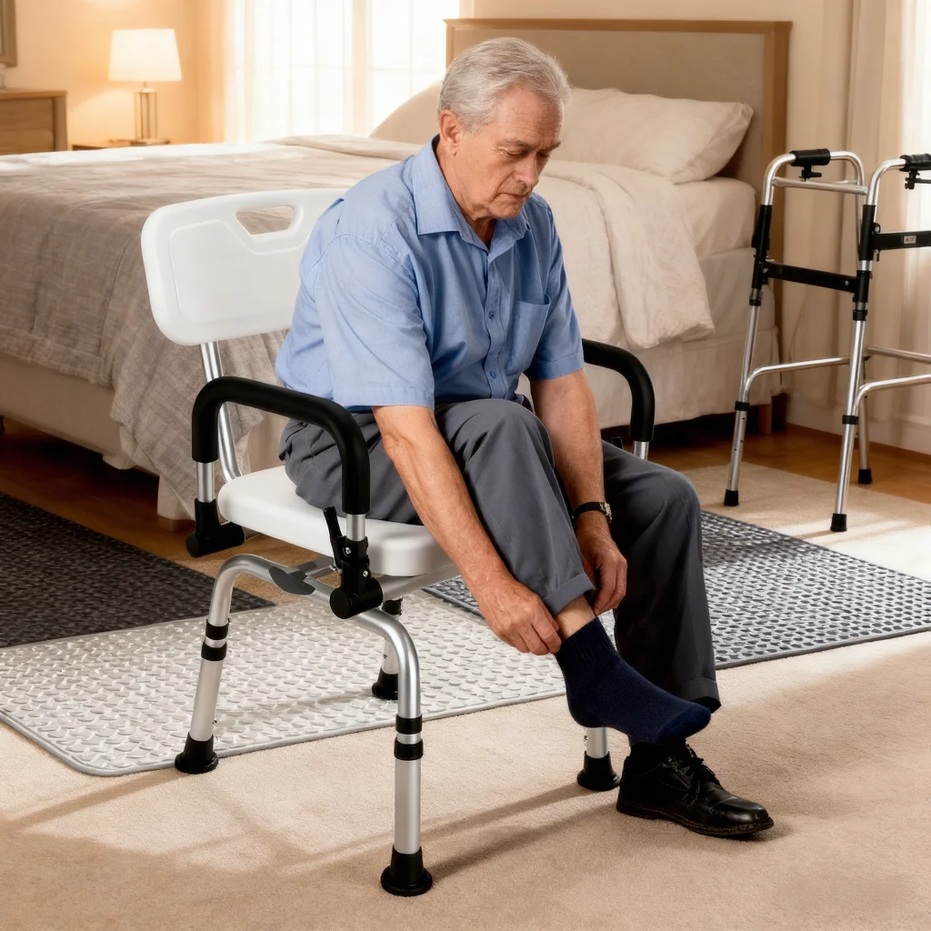 Wysokiej jakości krzesło prysznicowe z podłokietnikami i oparciem, sprzęt bezpieczeństwa do łazienki, plastikowy stołek, krzesło prysznicowe dla dorosłych z niepełnosprawnością.