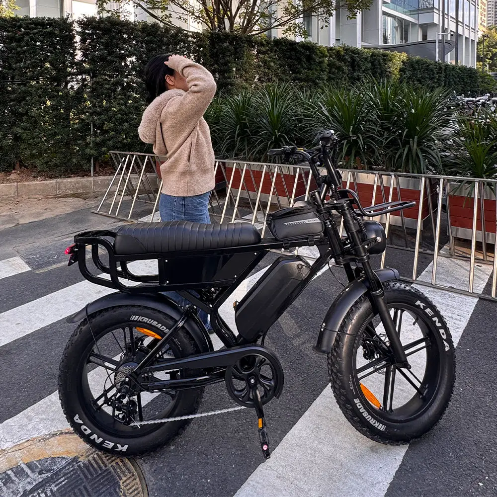 Rower elektryczny Ulzomo Dolphin z silnikiem 250W, akumulatorem 36V13AH, zasięgiem 89 km, oponami typu fat bike 20*3 cale, przerzutkami Shimano 7-biegowymi.