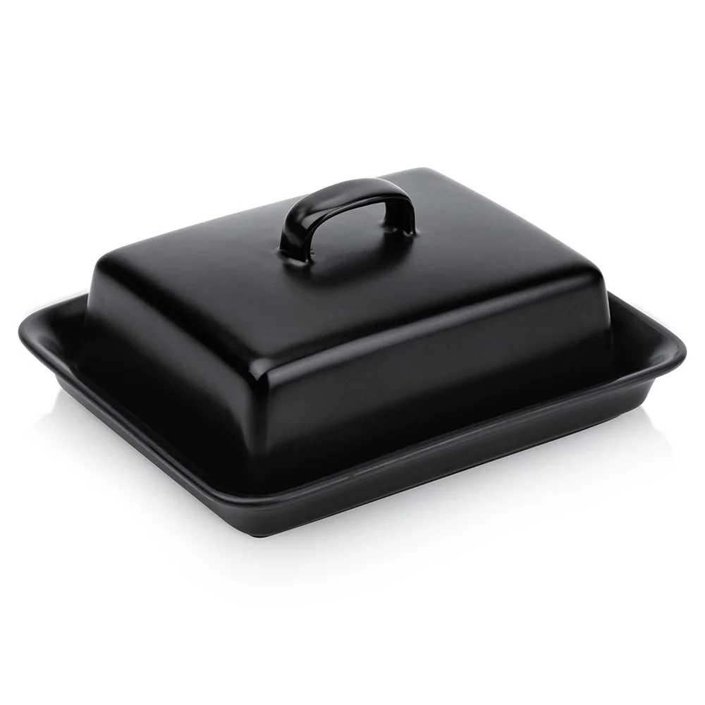 KEMORELA Ceramiczna naczynie na masło z pokrywką Prostokątne, zamykane pudełko do przechowywania sera Wysokiej klasy i eleganckie do kuchni i restauracji