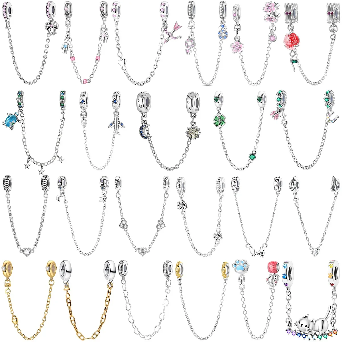 Nowe zawieszki w kształcie serca ze srebra próby 925, łańcuszki zabezpieczające, kokardki, kwiaty, kłódki, krzyże, symbole dla par, pasują do bransoletek, do samodzielnego tworzenia biżuterii.