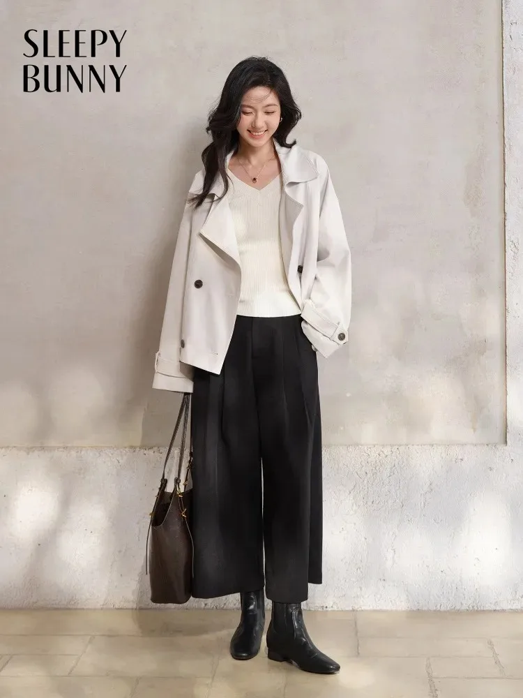 Nowy damski płaszcz typu trencz w jednolitym kolorze, stójka, dwurzędowy, wiązany w talii, elegancki, do pracy, casualowy, luźny, wygodny, ciepły strój.