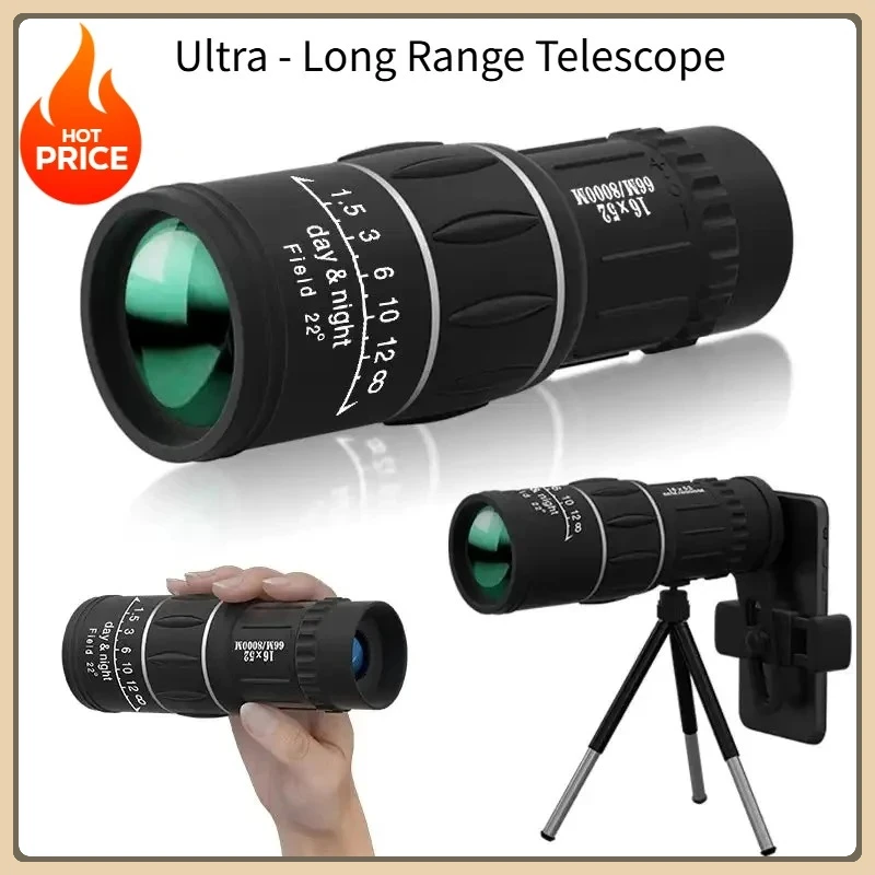Popularny obiektyw z zoomem optycznym, monokular z dużym powiększeniem 16x52 do obserwacji na duże odległości, do nocnego obserwowania, o dużej mocy, z podwójnym ustawianiem ostrości.