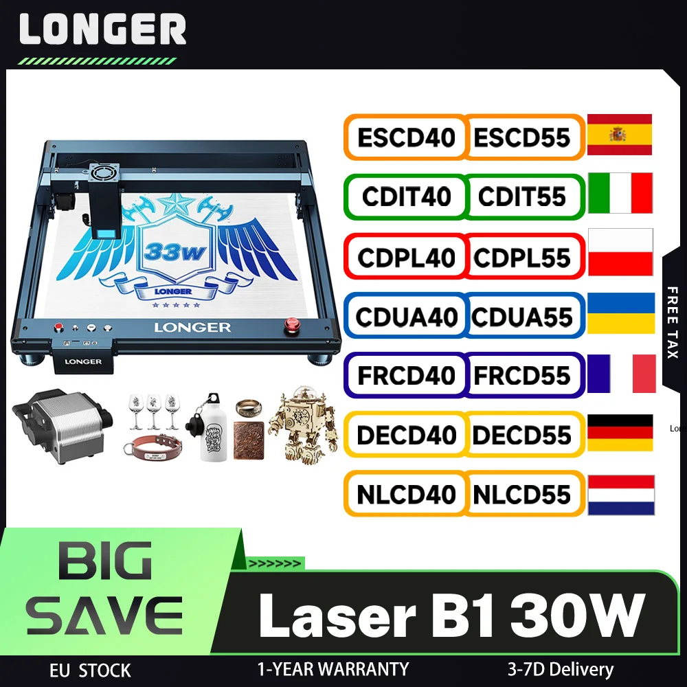 Laserowa grawerka i przecinarka Longer Laser B1 30W, 6-rdzeniowa głowica laserowa, obszar grawerowania 450 x 440 mm, wysoka prędkość 36 000 mm/min, wspomaganie powietrzem.