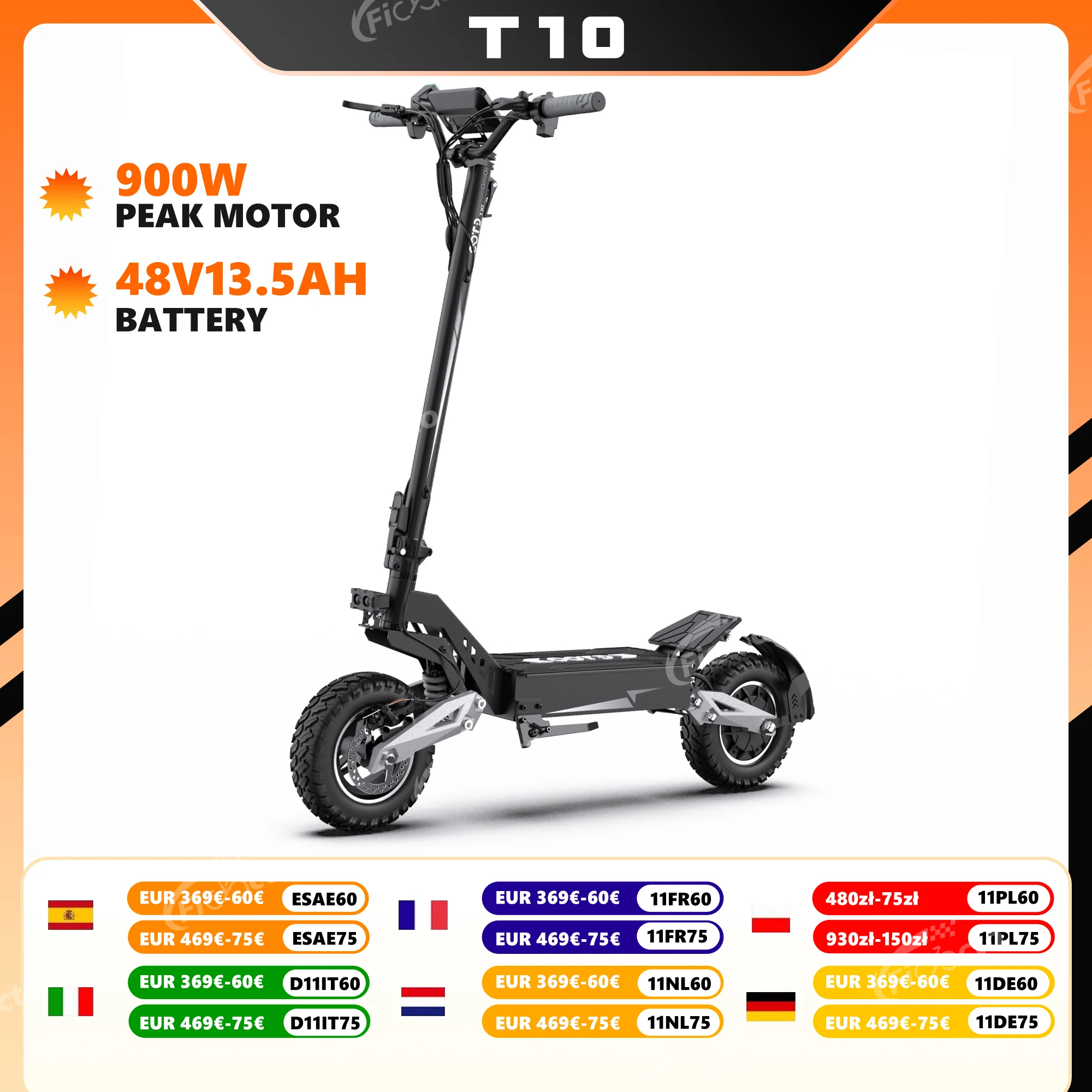 OOTD Hulajnoga Elektryczna T10 Składana Opony Terenowe 11 Cali 500W 48V 13.5AH Składana Elegancka Elektryczna Hulajnoga Górna E-Scoot