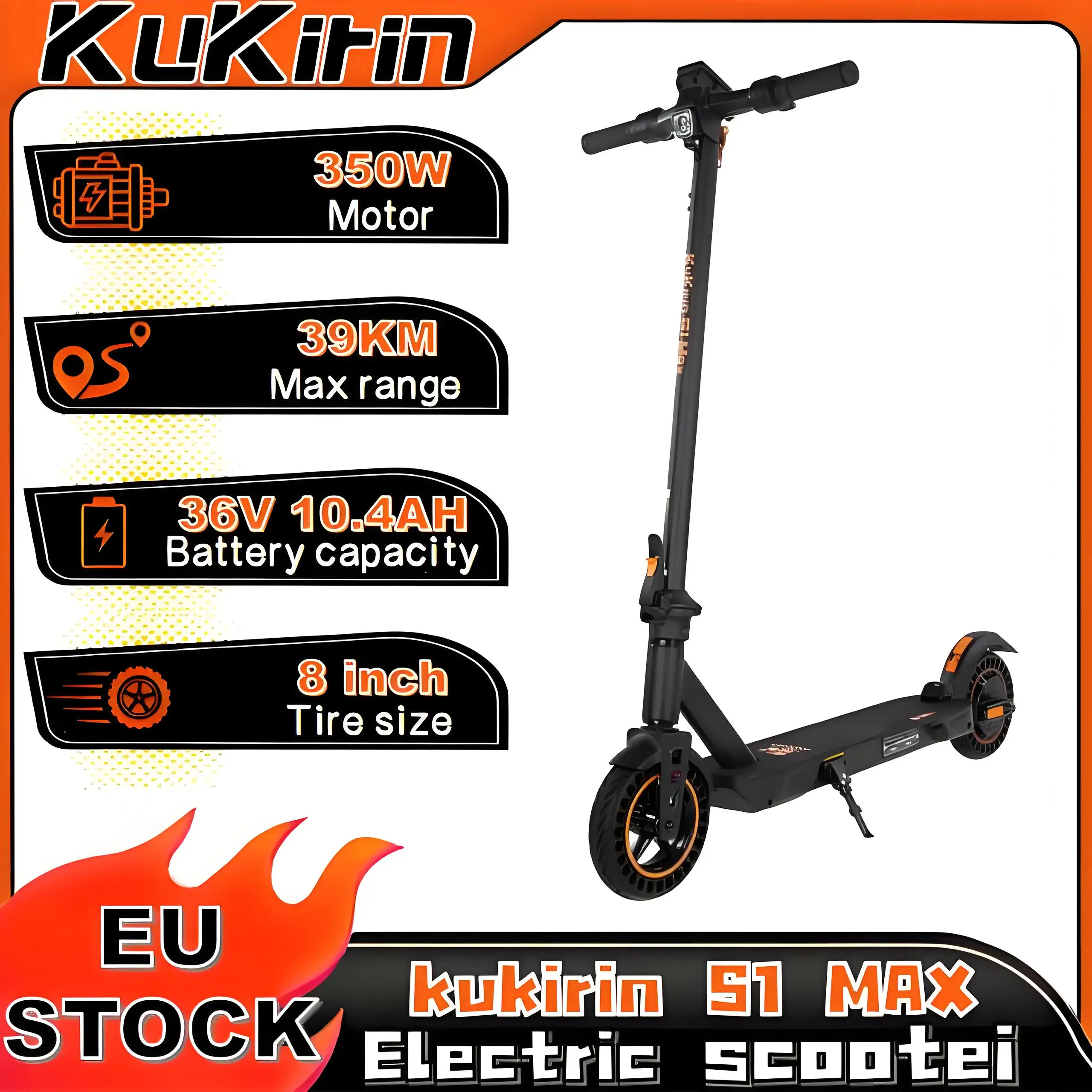 Hulajnoga elektryczna składana Kukirin S1 MAX, 350W, 36V, 10.4Ah, z zabezpieczeniem, 8-calowe koła terenowe, prędkość 25 km/h, zasięg 39 km.
