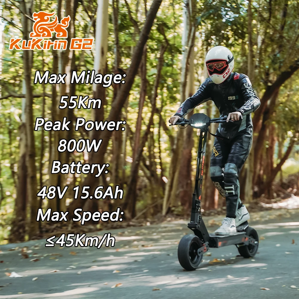 Hulajnoga elektryczna Kukirin G2, składana, bateria 48 V 15 Ah, opony 10 cali, maksymalna prędkość 45 km/h, zasięg 55 km, przód