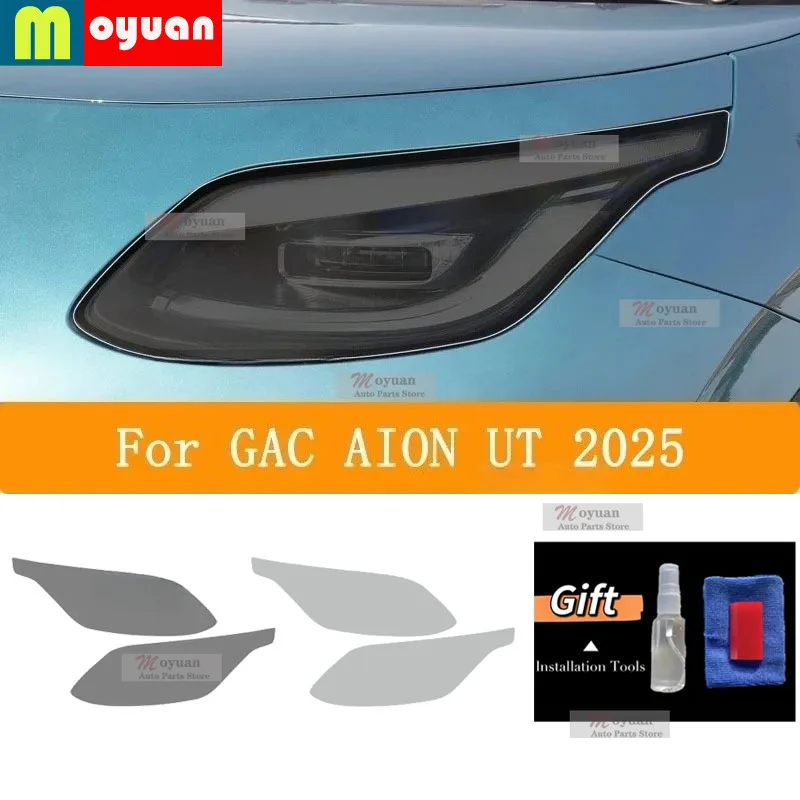 Folia ochronna na reflektory samochodowe GAC AION UT 2025, wstępnie przycięta, samoprzylepna, przyciemniana na czarno, przezroczysta, TPU, odporna na zarysowania.
