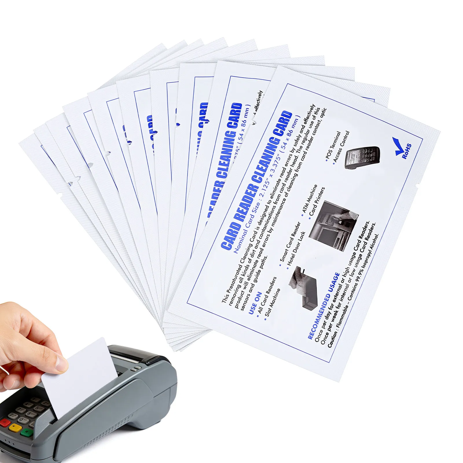 10 szt. Kart czyszczących do terminali POS, wielokrotnego użytku, do czytników kart, głowic magnetycznych i optycznych, zapobiegających zatrzymywaniu się kurzu, zestaw narzędzi do konserwacji.