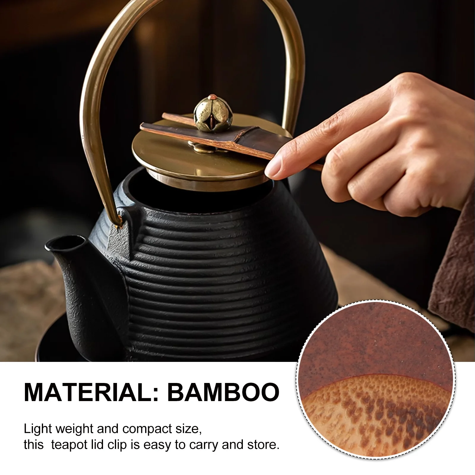 Klips do pokrywki czajnika, bambusowy, narzędzie do herbaty, widelec z antypoślizgowym uchwytem do bezpiecznego użycia pokrywki, uchwyt na pokrywkę czajnika, izolacja termiczna.