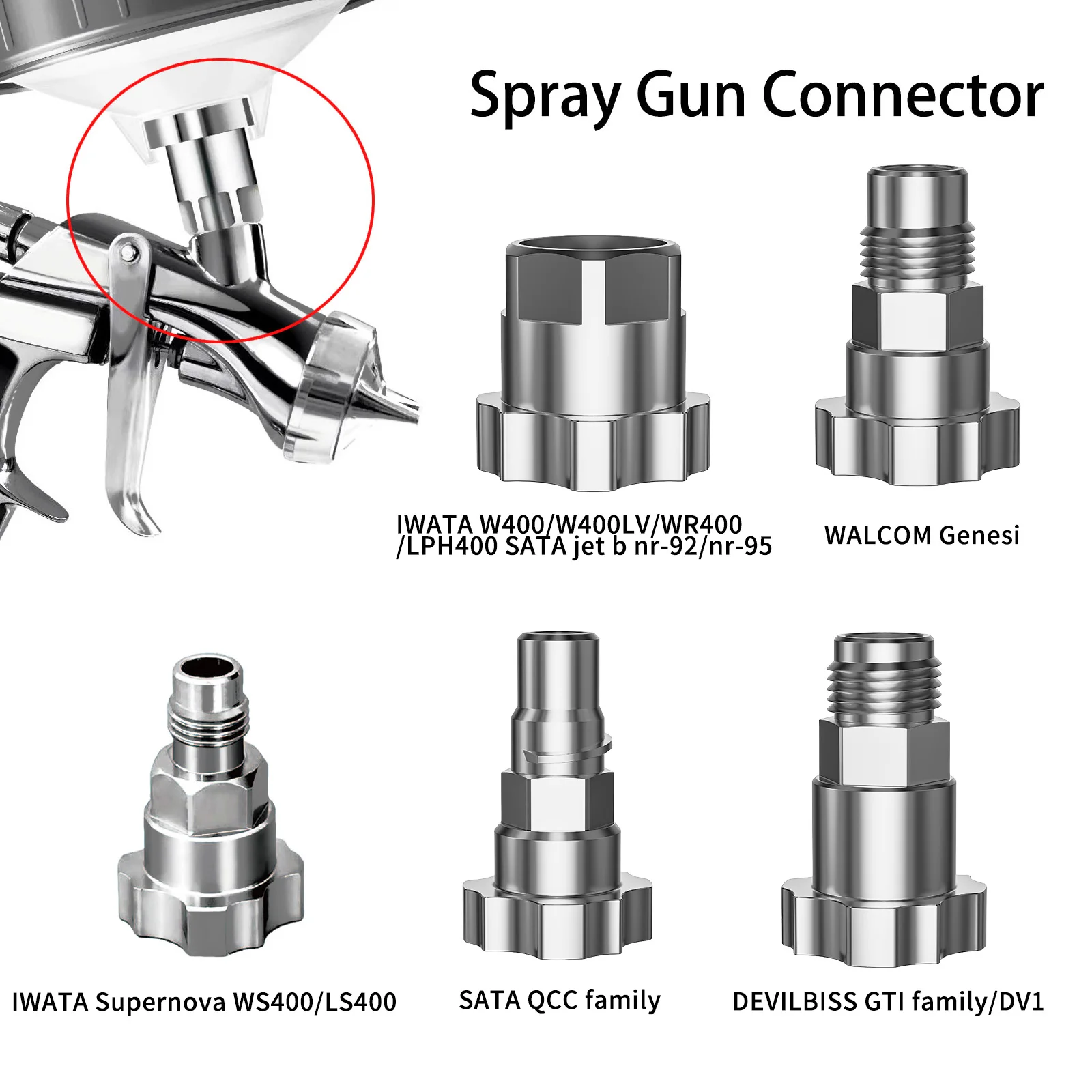 Złączka do pistoletu natryskowego ze stali nierdzewnej, pasująca do wielu modeli pistoletów natryskowych, odpowiednia do jednorazowych kubków odmierzających.