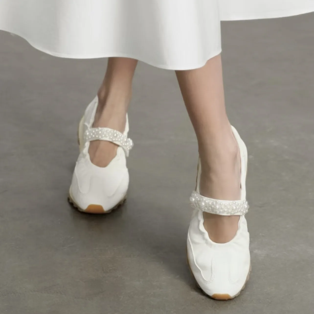 Małe, niszowe, designerskie buty do baletu na grubej podeszwie dla kobiet, nowy sportowy styl 2026, płytkie buty Mary Jane na rzepy, baleriny z perłami.