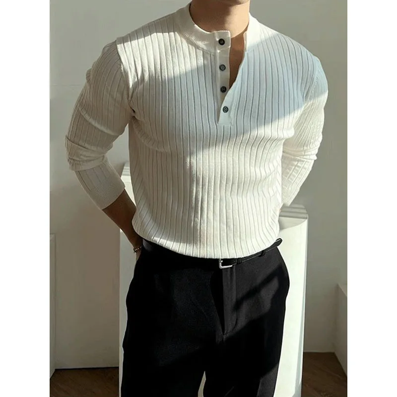 Wysokiej jakości męski sweter z wełny na jesień i zimę, okrągły dekolt, jednolity kolor, 100% wełna merino, dzianina, prosty, casualowy, podstawowy męski top.
