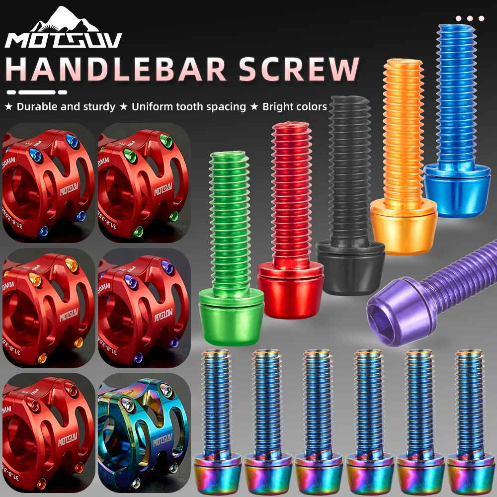 MOTSUV śruby do kierownicy rowerowej jazda na rowerze 6 szt. powlekane tytanem kolorowe stal nierdzewna M5*18MM MTB wspornik rowerowy śruby wkręcane