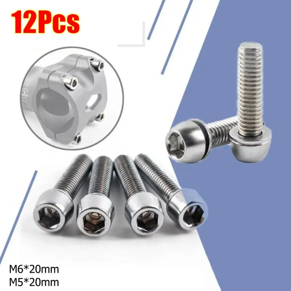 12 szt. Śruby do kierownicy rowerowej M5/M6*20mm, śruby do mostka rowerowego ze stali nierdzewnej, uniwersalne śruby do mostka rowerowego, akcesoria naprawcze
