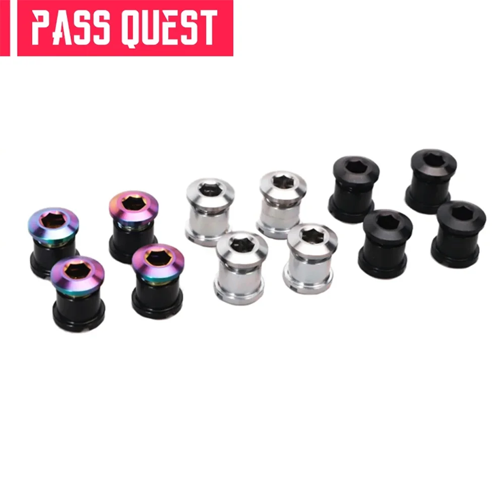 Śruby do tarczy rowerowej PASS QUEST, wykonane ze stopu tytanu, przedłużone, do tarczy pojedynczej i podwójnej, lekkie i wytrzymałe.