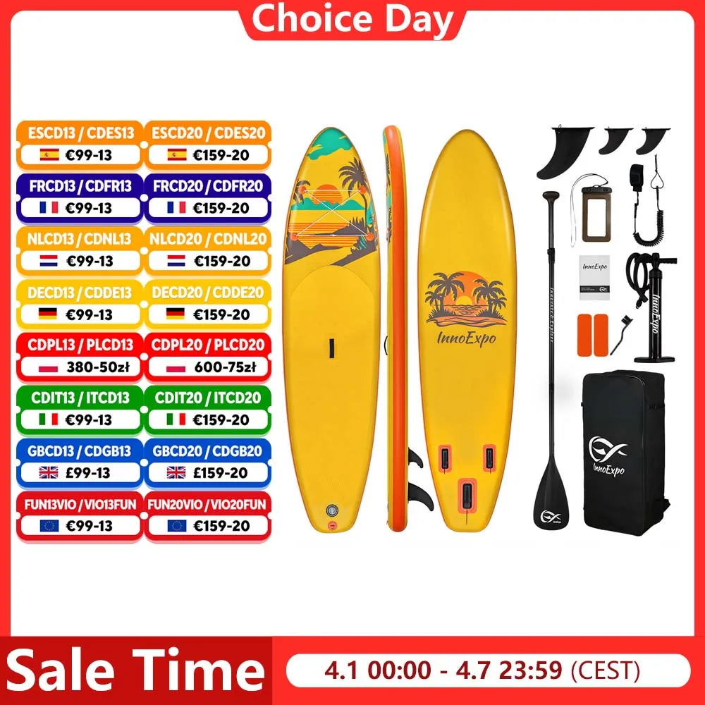 FunWater 11' Nadmuchiwana deska SUP, polecana przez mistrza świata, szerokość 335 cm, stabilny zestaw do stand up paddle, model SUPFW03A, dla dorosłych, bez podatku.