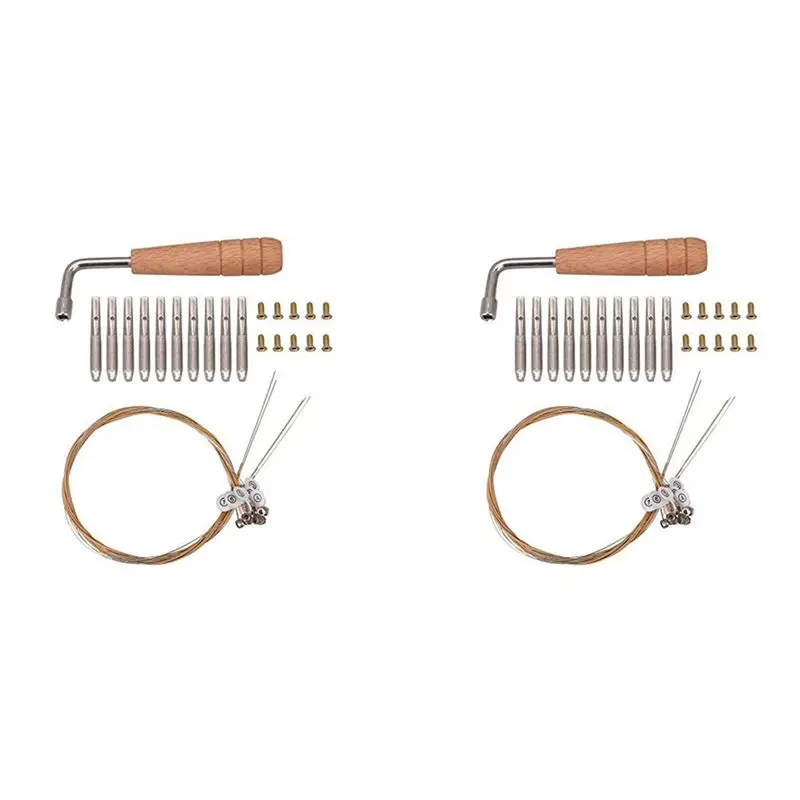 AEF6-20 szt. Kołków stroikowych i 20 szt. nitów, z kluczem stroikowym w kształcie litery L, 10 strun do lira, struny do lira harfy, instrument strunowy.