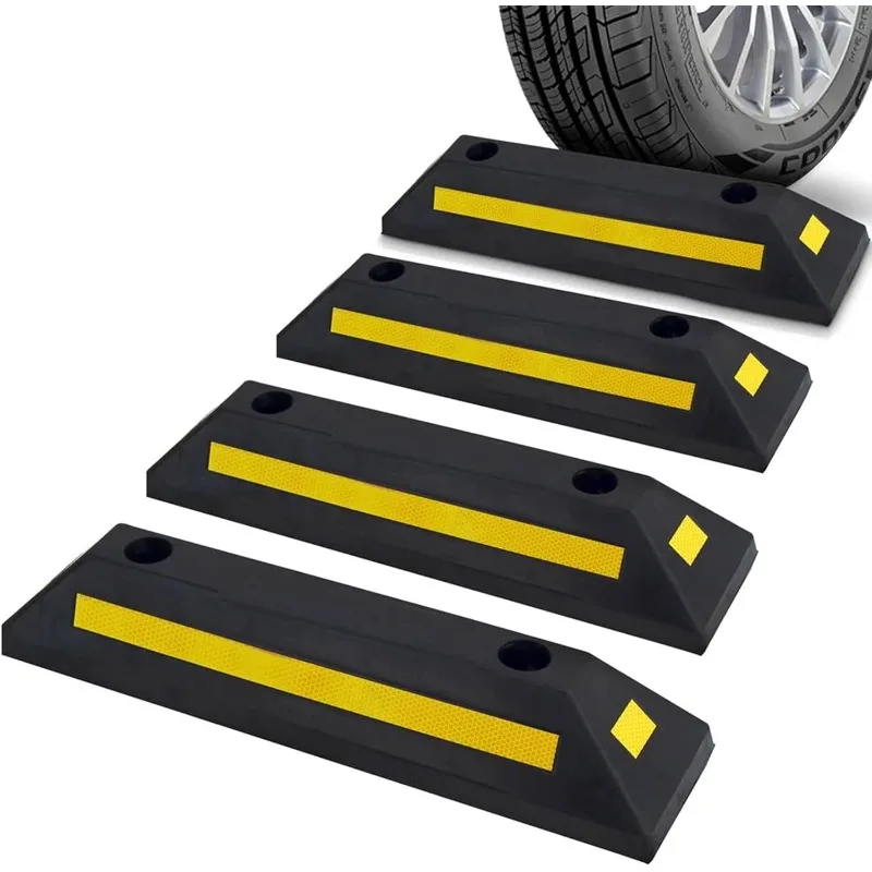 Wytrzymały gumowy ogranicznik do kół samochodowych do parkowania w garażu z żółtymi paskami, odporny na zużycie blokada do opon, uniwersalny blok bezpieczeństwa.