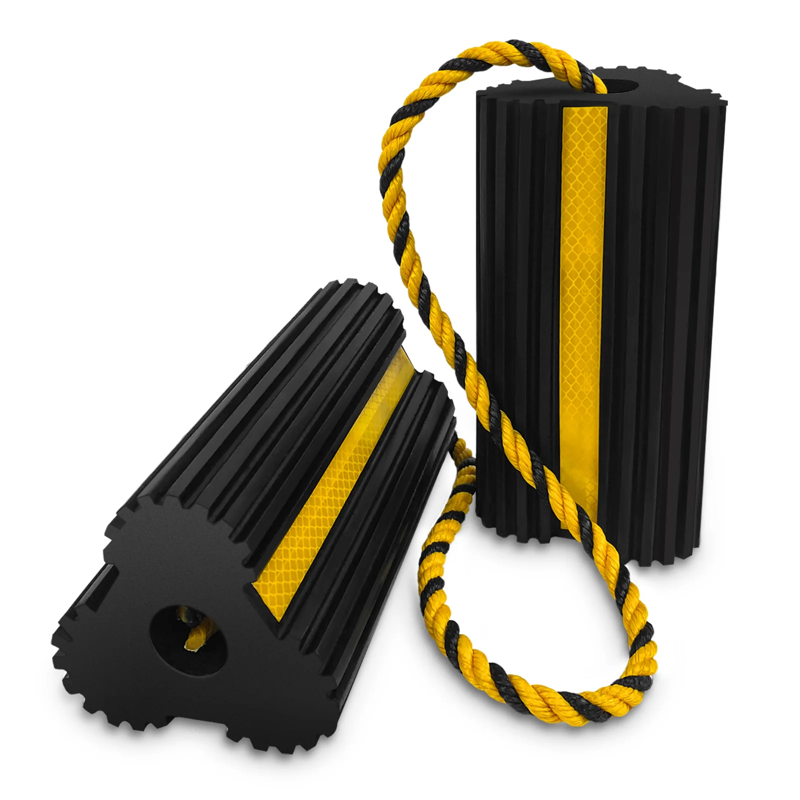 Gumowe klocki pod koła z nylonowym sznurkiem, wytrzymałe, tymczasowe ochrony parkingowych dla przyczep kempingowych, kamperów, samolotów, ciężarówek i kamperów.