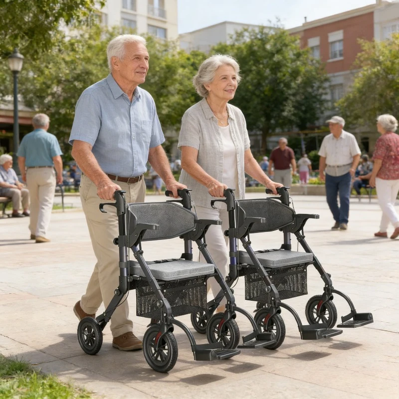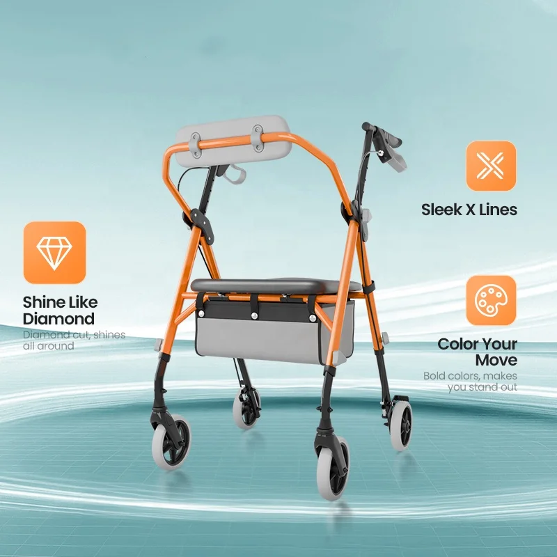 Składany chodzik dla osób starszych z siedziskiem i kółkami, wózek spacerowy zapobiegający upadkom, asystent rehabilitacyjny do użytku wewnątrz i na zewnątrz