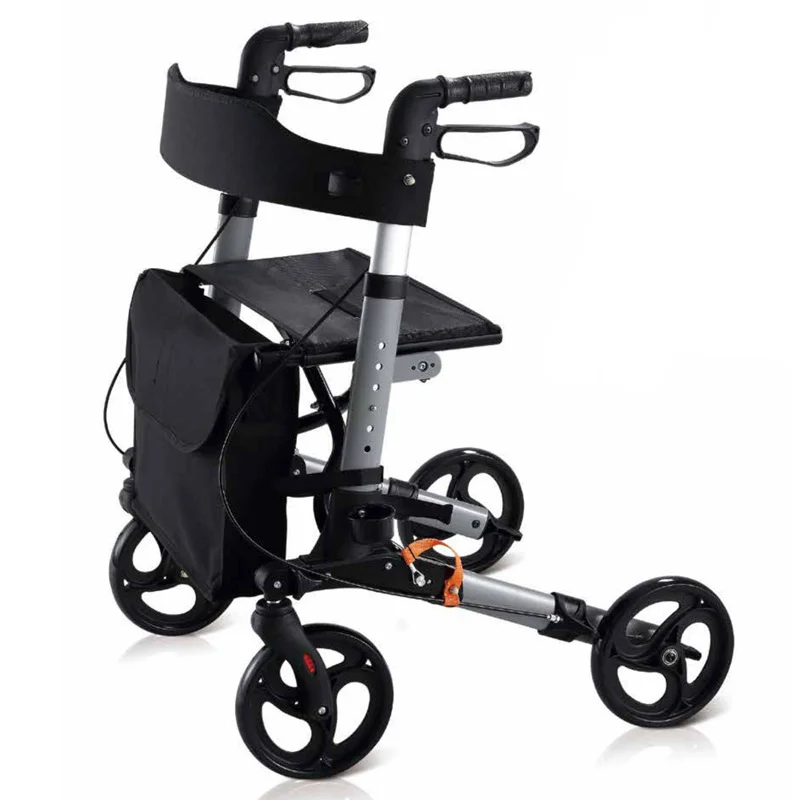 Wielofunkcyjny, aluminiowy, czterokołowy wózek na zakupy dla seniorów, osób niepełnosprawnych, z funkcją chodzika i wspomagania jazdy, odpowiedni po złamaniach.